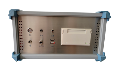 后面板由開關、出氣口、USB插口、微型打印機、環境溫濕度、充電口、接地端組成