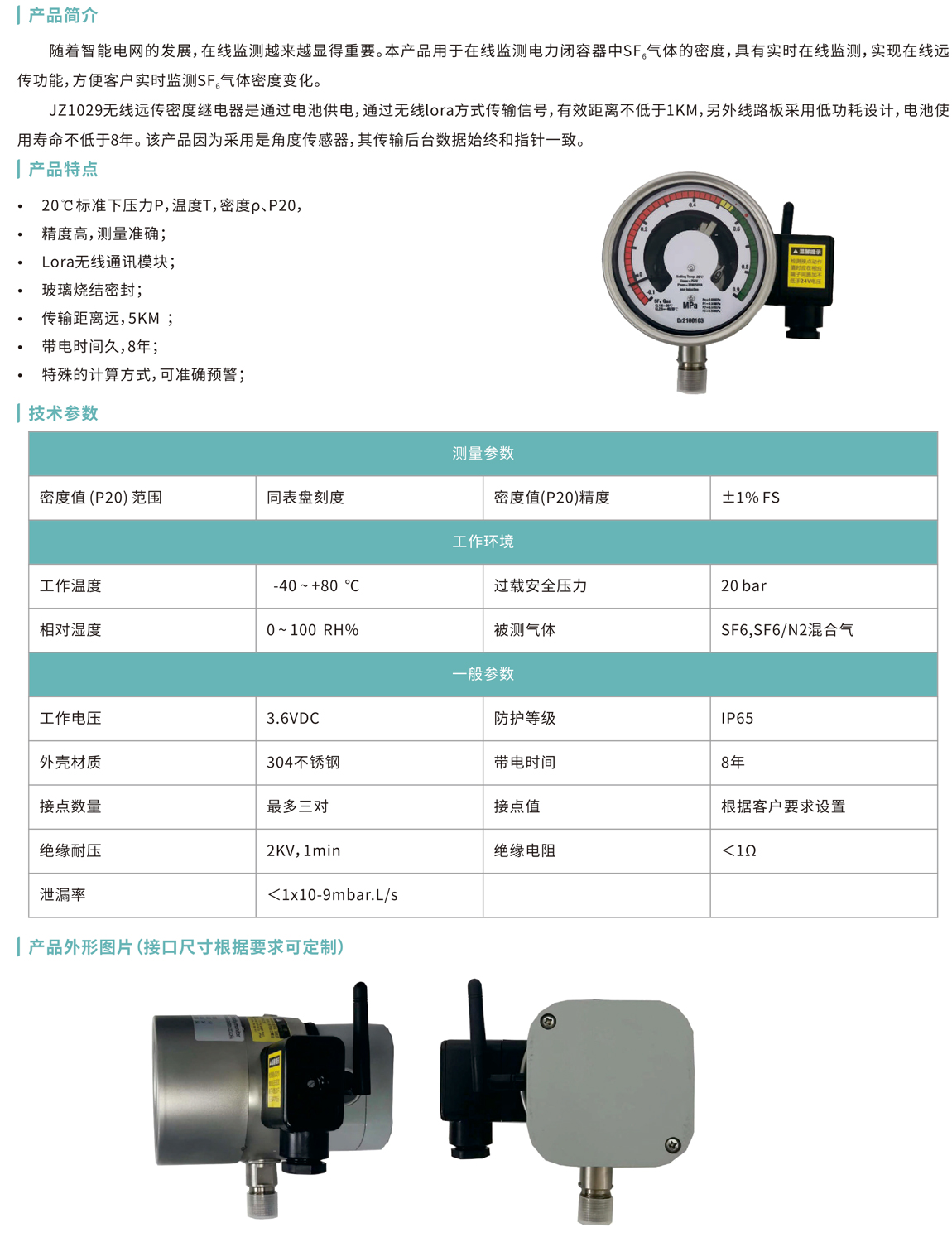 JZ1029 無線遠(yuǎn)傳密度繼電器